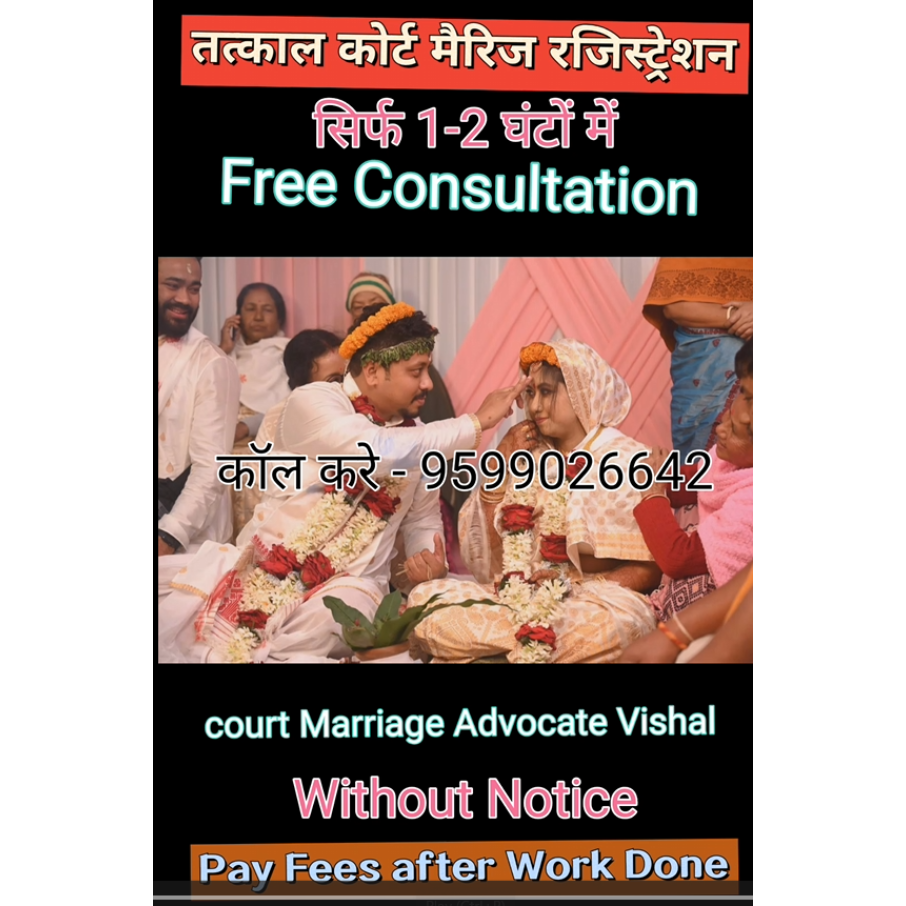 Delhi Court Marriage | Call +919599026642 Vishal Associates is a trusted & secure Law Firm in Delhi NCR Ghaziabad that provides Court Marriage Services in Delhi NCR Ghaziabad with Legally & Safe Secure Services. We Provide Same Day Court Marriage Certificate within 2 Hours from Delhi NCR Ghaziabad Govt. Without Notice at Home - Genuine Fees - No Hidden Charges. * WE KEEP YOUR INFORMATION CONFIDENTIAL * NO ONE CAN CHALLENGE OUR SERVICES Our Office address 👇🏻 Delhi Chamber : Chamber no. 1077, Western Wing, Tis Hazari, Delhi Ghaziabad Chamber : Chamber no. 41, Sadar Tahsil, Ghaziabad Noida Chamber : Chamber No. 53, S.R Compound opp. NTPC Building Sec-23, Noida Our Services : Delhi Court Marriage | Court Marriage in Delhi | Court Marriage Delhi | Same Day Court Marriage in Delhi | Tatkal Court Marriage in Delhi | Urjent Court Marriage in Delhi | Instant Court Marriage in Delhi | Court Marriage in Delhi | NRI Court Marriage in Delhi | Muslim Court Marriage in Delhi | Court Marriage Certificate | Same Day NRI Court Marriage in Delhi | Same Day Foreigner Court Marriage in Delhi | Inter Religion Court marriage in Delhi | Inter caste Court Marriage in Delhi | Love Marriage in Delhi | Arya Samaj Marriage in Delhi | Court Marriage Lawyer in Delhi | Best Court Marriage Advocate in Delhi | Same Day Christian Court Marriage in Delhi | Same Day Hindu Muslim Court Marriage in Delhi | One Day Court Marriage in Delhi | Delhi Court Marriage Procedure Fees | Delhi Court Marriage Fees