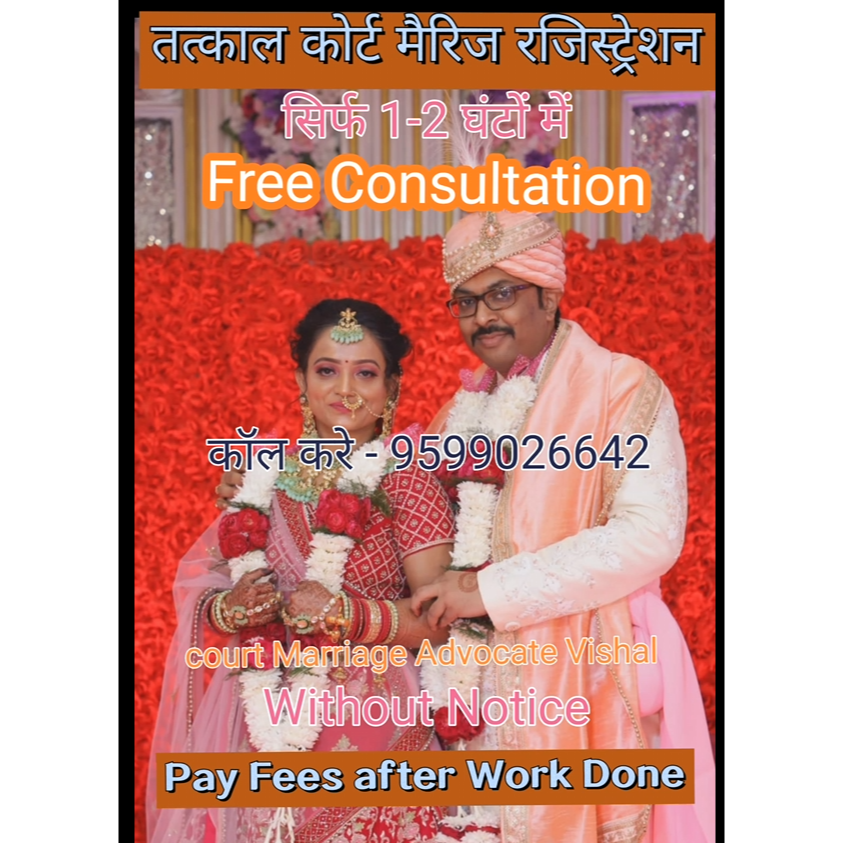Same Day Delhi Court Marriage | Call +919599026642 Vishal Associates is a trusted & secure Law Firm in Delhi NCR Ghaziabad that provides Court Marriage Services in Delhi NCR Ghaziabad with Legally & Safe Secure Services. We Provide Same Day Court Marriage Certificate within 2 Hours from Delhi NCR Ghaziabad Govt. Without Notice at Home - Genuine Fees - No Hidden Charges. * WE KEEP YOUR INFORMATION CONFIDENTIAL * NO ONE CAN CHALLENGE OUR SERVICES Our Office address 👇🏻 Delhi Chamber : Chamber no. 1077, Western Wing, Tis Hazari, Delhi Ghaziabad Chamber : Chamber no. 41, Sadar Tahsil, Ghaziabad Noida Chamber : Chamber No. 53, S.R Compound opp. NTPC Building Sec-23, Noida Our Services : Delhi Court Marriage | Court Marriage in Delhi | Court Marriage Delhi | Same Day Court Marriage in Delhi | Tatkal Court Marriage in Delhi | Urjent Court Marriage in Delhi | Instant Court Marriage in Delhi | Court Marriage in Delhi | NRI Court Marriage in Delhi | Muslim Court Marriage in Delhi | Court Marriage Certificate | Same Day NRI Court Marriage in Delhi | Same Day Foreigner Court Marriage in Delhi | Inter Religion Court marriage in Delhi | Inter caste Court Marriage in Delhi | Love Marriage in Delhi | Arya Samaj Marriage in Delhi | Court Marriage Lawyer in Delhi | Best Court Marriage Advocate in Delhi | Same Day Christian Court Marriage in Delhi | Same Day Hindu Muslim Court Marriage in Delhi | One Day Court Marriage in Delhi | Delhi Court Marriage Procedure Fees | Delhi Court Marriage Fees