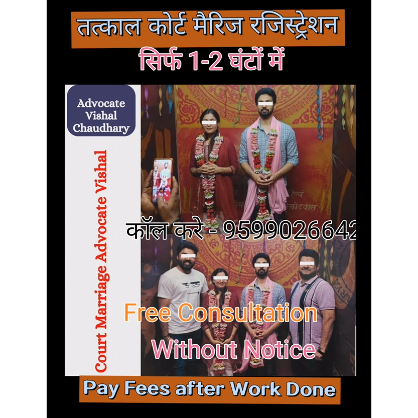 Same Day Delhi Court Marriage | Call +919599026642 Vishal Associates is a trusted & secure Law Firm in Delhi NCR Ghaziabad that provides Court Marriage Services in Delhi NCR Ghaziabad with Legally & Safe Secure Services. We Provide Same Day Court Marriage Certificate within 2 Hours from Delhi NCR Ghaziabad Govt. Without Notice at Home - Genuine Fees - No Hidden Charges. * WE KEEP YOUR INFORMATION CONFIDENTIAL * NO ONE CAN CHALLENGE OUR SERVICES Our Office address 👇🏻 Delhi Chamber : Chamber no. 1077, Western Wing, Tis Hazari, Delhi Ghaziabad Chamber : Chamber no. 41, Sadar Tahsil, Ghaziabad Noida Chamber : Chamber No. 53, S.R Compound opp. NTPC Building Sec-23, Noida Our Services : Delhi Court Marriage | Court Marriage in Delhi | Court Marriage Delhi | Same Day Court Marriage in Delhi | Tatkal Court Marriage in Delhi | Urjent Court Marriage in Delhi | Instant Court Marriage in Delhi | Court Marriage in Delhi | NRI Court Marriage in Delhi | Muslim Court Marriage in Delhi | Court Marriage Certificate | Same Day NRI Court Marriage in Delhi | Same Day Foreigner Court Marriage in Delhi | Inter Religion Court marriage in Delhi | Inter caste Court Marriage in Delhi | Love Marriage in Delhi | Arya Samaj Marriage in Delhi | Court Marriage Lawyer in Delhi | Best Court Marriage Advocate in Delhi | Same Day Christian Court Marriage in Delhi | Same Day Hindu Muslim Court Marriage in Delhi | One Day Court Marriage in Delhi | Delhi Court Marriage Procedure Fees | Delhi Court Marriage Fees